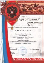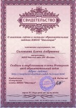 I место в районном конкурсе "Калейдоскоп методических идей" в номинации "Личный сайт" |