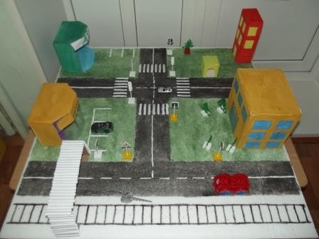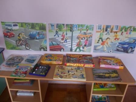 Данный уголок оснащен необходимыми атрибутами к сюжетно-ролевым играм; дидактическими и настольными играми для закрепления знаний правил дорожного движения. Хорошим дидактическим пособием служит напольный коврик с разметкой улиц и дорог, макеты по правилам дорожного движения, светофор. Здесь дети знакомятся с элементами дороги и дорожными знаками, формируют навыки безопасного поведения на дороге.