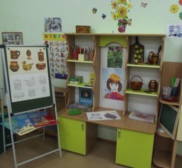 соседствует со спокойной «зоной» деятельности детей. Располагается вблизи окна. Все экспозиции картин и репродукций располагаются на такой высоте, чтобы дети могли увидеть и рассмотреть их. Стенка – выставка детских работ размещается около стены творчества. Также в группе имеется много привлекательных, разнообразных и простых в использовании материалов для изобразительной деятельности.