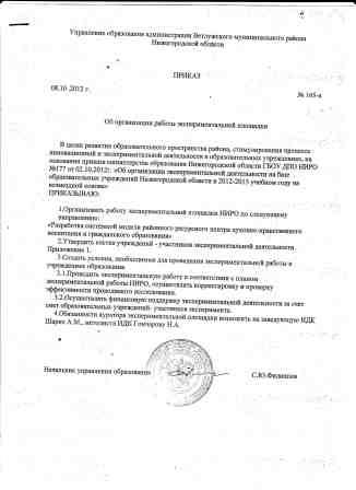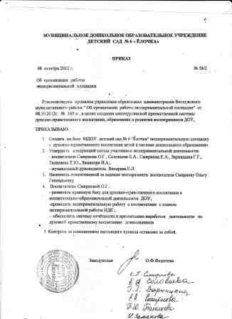 В 2012 году на базе нашего ДОУ была организована экспериментальная площадка НИРО "Духовно-нравственного воспитания детей в системе дошкольного образования"