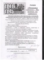 Уважаемые родители! Предлагаем Вам принять участие в акции "Открытка ветерану - мы помним, мы гордимся!" С уважением воспитатели!