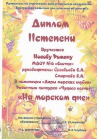 Поздравляем Носова Рому, занявшего 2 место в районном конкурсе "Чудеса осени"!!! Так держать! Благодарим участников конкурса: Вотякову Настю, Шевелева Олега!