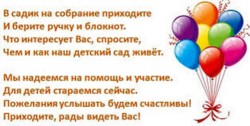 Уважаемые родители! Приглашаем Вас принять активное участие в обсуждении стратегии развития Нижегородской области. Собрание состоится 23.07.2018 г. в 16:30 в детском саду (подготовительная группа). | |