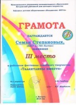Поздравляем семью Степановых: Диму, Татьяну Николаевну, Николая Николаевича с ПОБЕДОЙ в районном фестивале семейного творчества "Талантливы вместе", в номинации "Растим чемпионов"!!! Так держать!!!